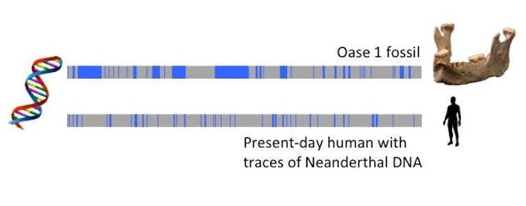 Cependant, leurs interactions n’étaient pas terminées : les humains modernes ont finalement colonisé l’Eurasie et se sont accouplés avec des Néandertaliens. En appliquant l’horloge de recombinaison à l’ADN néandertalien conservé chez les humains actuels, les chercheurs estiment que les groupes se sont croisés entre 54 000 et 40 000 ans. Lorsque les scientifiques ont analysé un fossile d’Homo sapiens, connu sous le nom d’Oase 1, ayant vécu il y a environ 40 000 ans, ils ont trouvé de grandes régions d’ascendance néandertalienne dans le génome d’Oase 1, suggérant que Oase 1 avait un ancêtre néandertalien il y a seulement quatre ou six générations. En d’autres termes, l’arrière-arrière-grand-parent d’Oase 1 était un néandertalien.